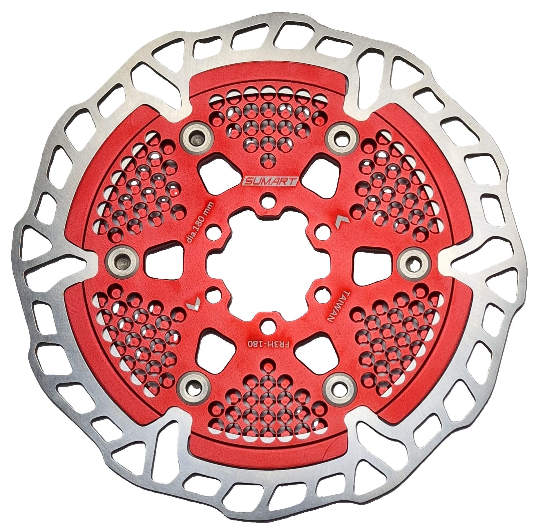 Die schwimmend gelagerte Bremsscheibe von SUMART besteht aus einer Kombination aus CNC gefrästen 7075er-Legierung und einem 410er-Edelstahl-Bremskörper, um optimale Leistung und Langlebigkeit zu gewährleisten. Dieser Rotor wurde für eine leisere und effizientere Fahrt entwickelt und ist perfekt für die verschiedensten Bedingungen geeignet.